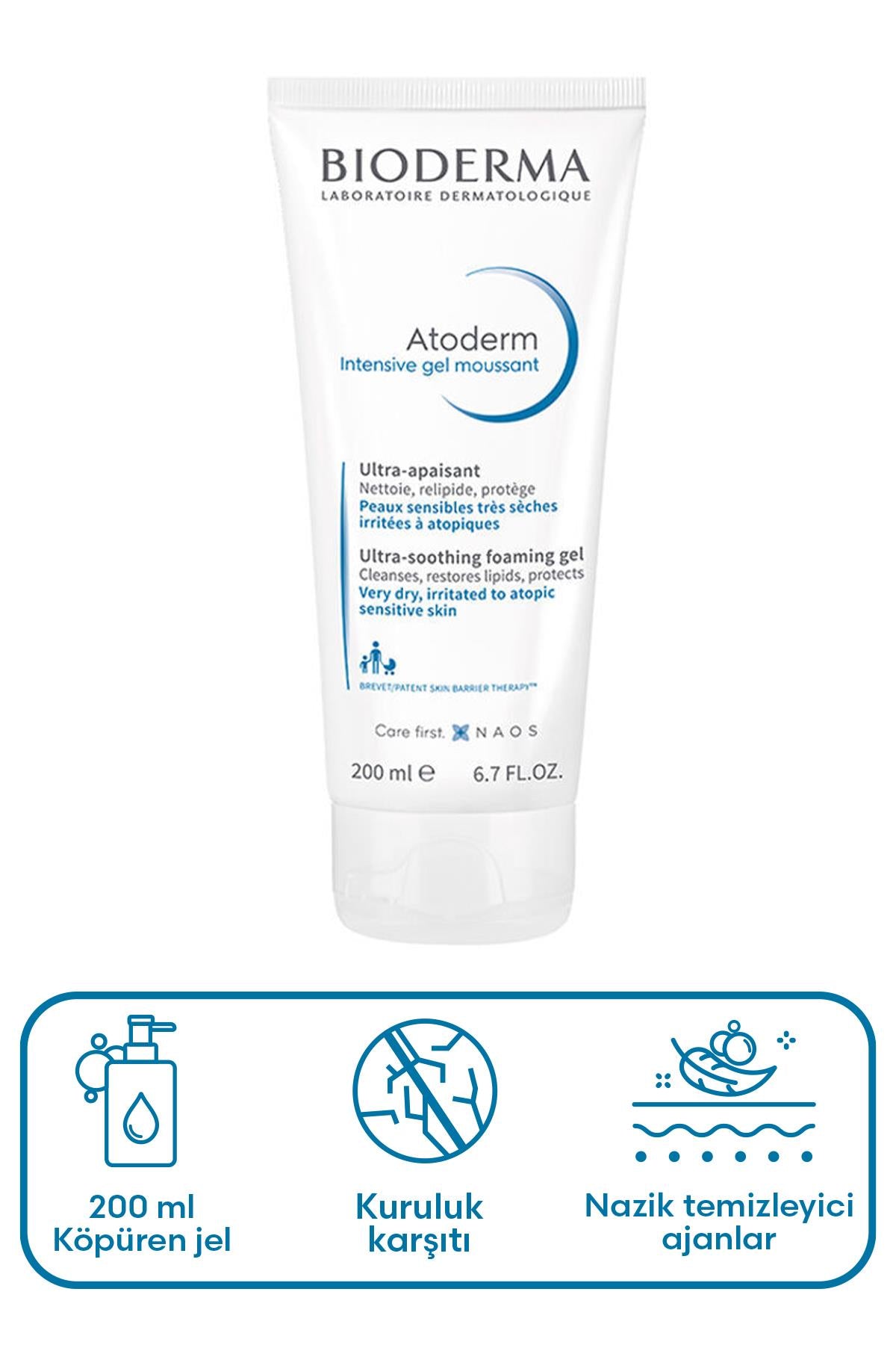 Bioderma Atoderm Intensive Foaming Gel 200 ml Yıkama Jeli, cildi nazikçe temizler ve kuruluk kaynaklı rahatsızlık hissini azaltmaya yardımcı olan özel bir formülasyona sahiptir.