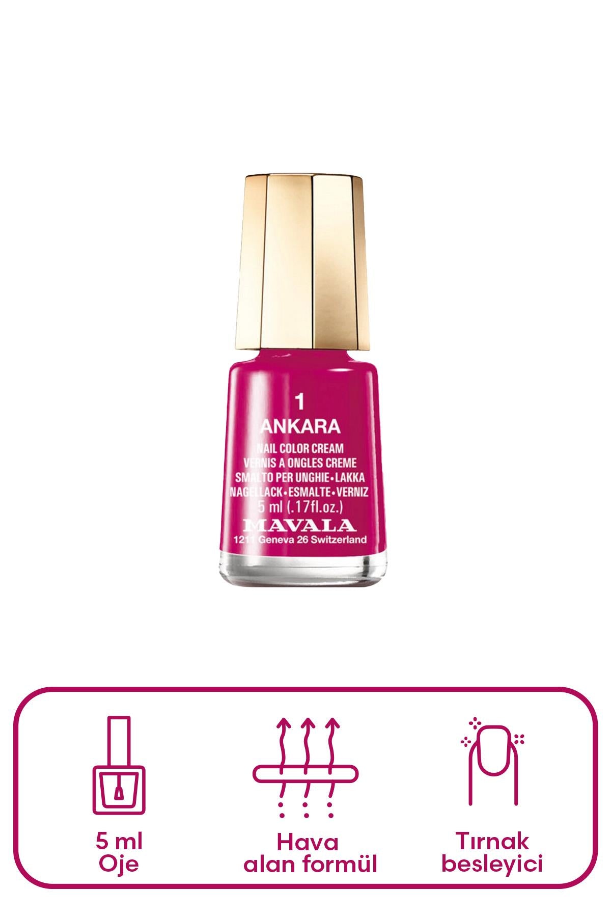Mavala Mini Color Oje 1 Ankara 5 ml, tırnaklarınıza canlı bir renk katmak ve güzelliğini ön plana çıkarmak için özel olarak formüle edilmiş bir ojedir.