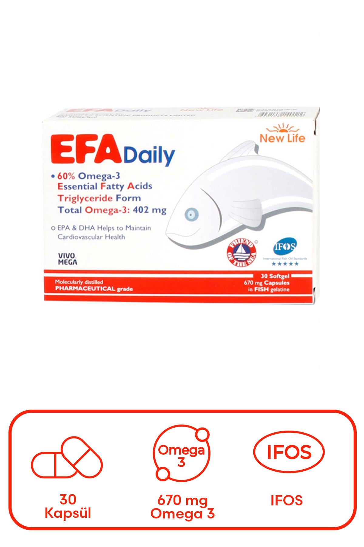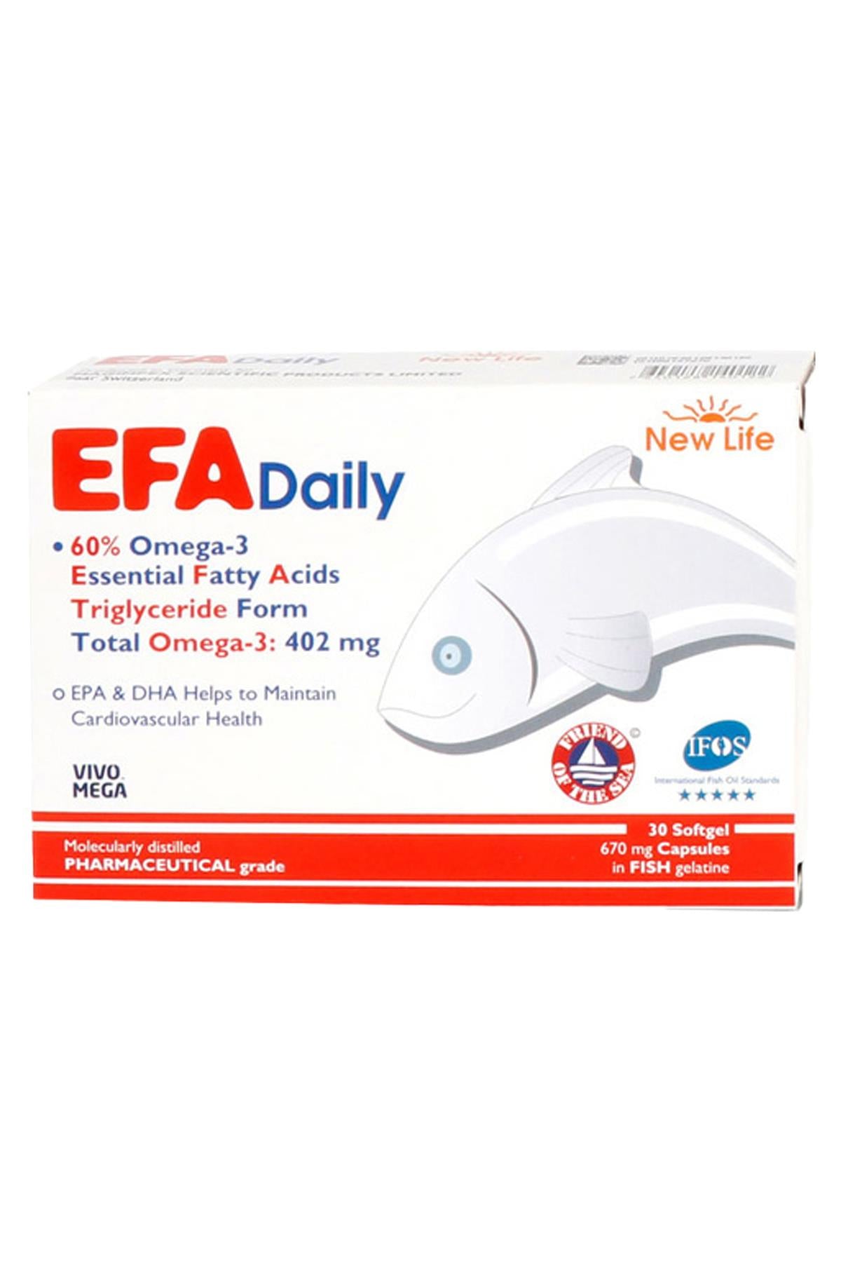 New Life EFA Daily Takviye Edici Gıda 30 Kapsül, vücudun ihtiyaç duyduğu Omega 3 yağ asitlerini içeren bir takviye edici gıdadır ve genel sağlığı desteklemeye yardımcı olabilir.